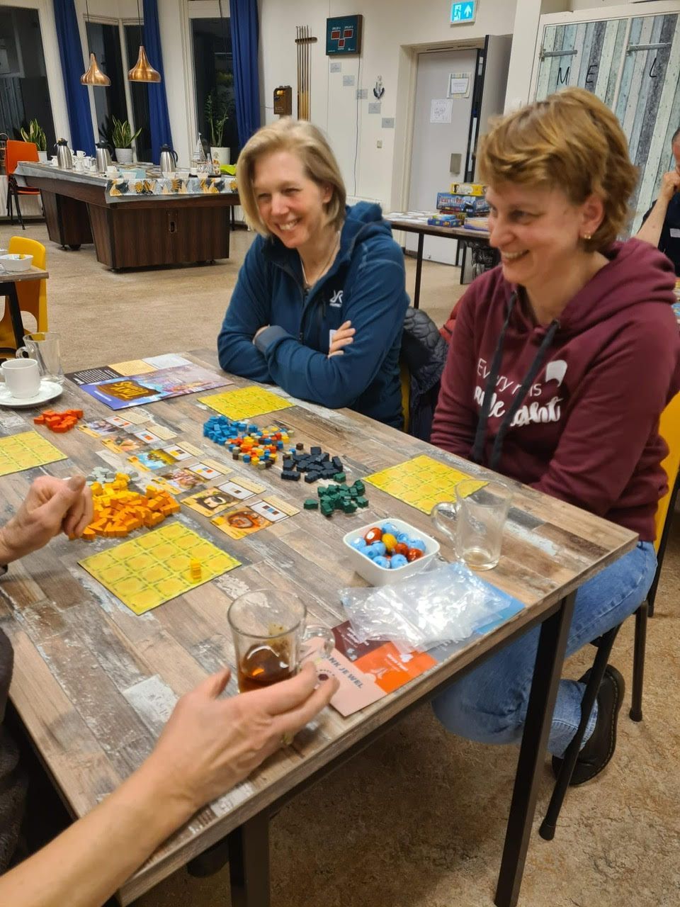 We nemen zelf een selectie spellen mee, die we uitleggen en klaarzetten. Geen ervaring? Geen probleem! Er is altijd iemand om te helpen. Terwijl we spelen, kun je genieten van koffie, thee of iets lekkers van de bar. Als je spel klaar is, kun je instappen bij een nieuwe ronde of rustig afsluiten. We spelen tot ongeveer 22.30 uur, maar je bent vrij om te gaan wanneer je wilt.